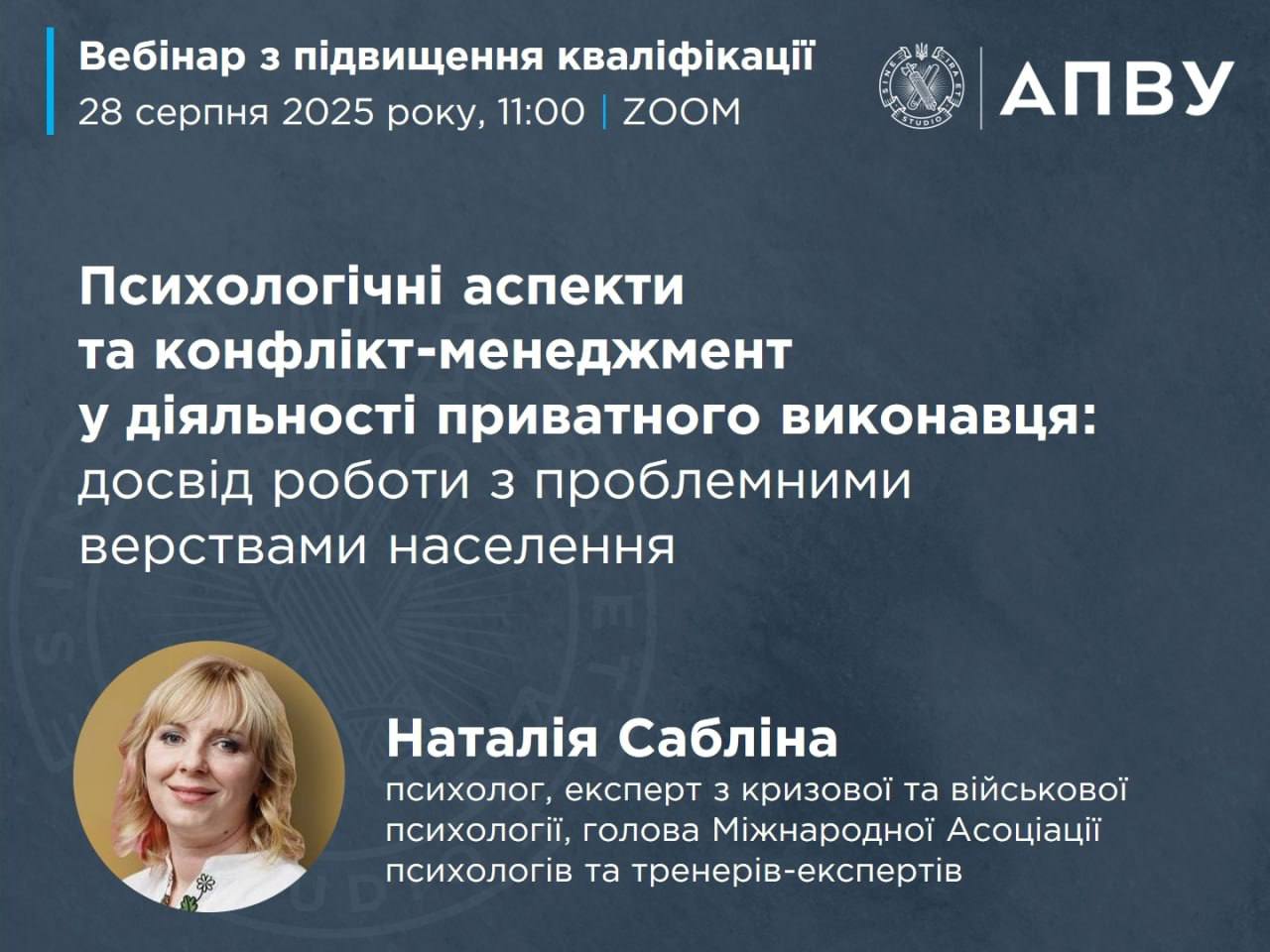 Вебінар “Психологічні аспекти та конфлікт-менеджмент у діяльності приватного виконавця: досвід роботи з проблемними верствами населення”