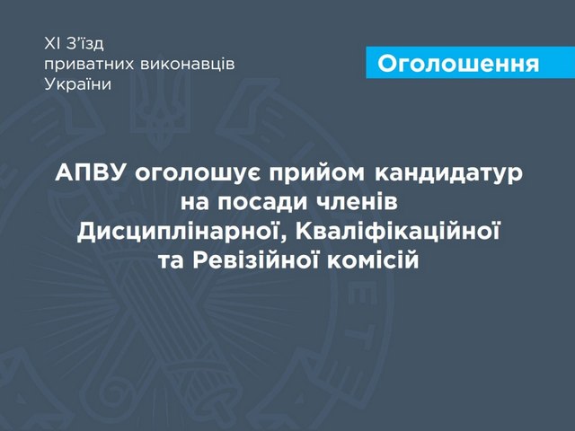 Увага! АПВУ оголошує прийом кандидатур на посади членів Дисциплінарної, Кваліфікаційної та Ревізійної комісій